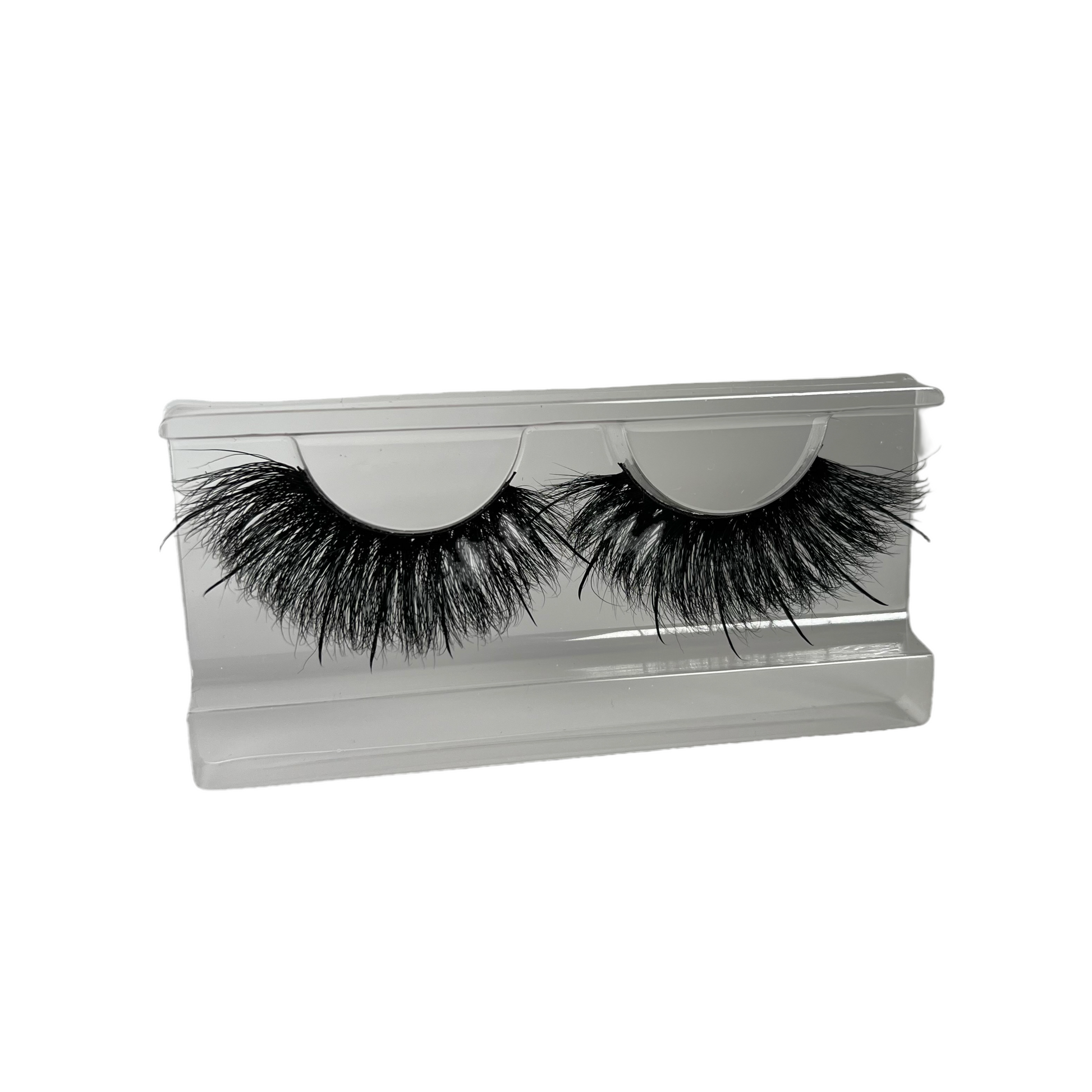 "Amourr" A dramatic hybrid spiked 25mm mink lash combines elements of both dramatic length and a spiked design. These lashes are longer at certain points, creating a spiked effect for a bold and edgy look. They offer a unique and striking appearance, enhancing the eyes with a mix of length and texture.